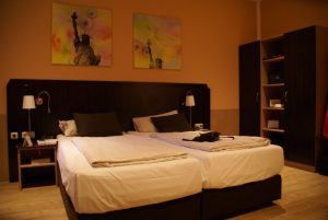 Vi valgte dette hotel på grund af brede senge og god beliggenhed.