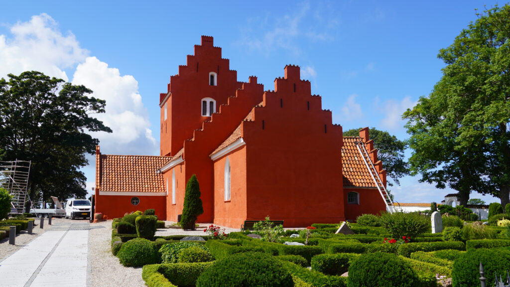 På vej til Odden møder vi den røde kirke, Odden kirke, har en speciel historie og den fik jeg først i dag selv om jeg har kørt forbi kirken utallige gange når jeg skulle til Glostrup i min Carl Bro tid.