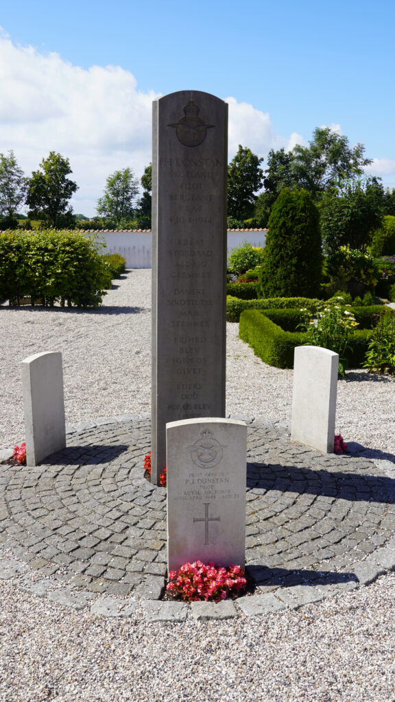 Tre engelske piloter fra Royal Air Force (RAF) styrtede i 1944 ned over Sejerøbugten. Ved den første pilots begravelse deltog alle i sognet, og blomsterne på kisten var i smukke RAF farver.